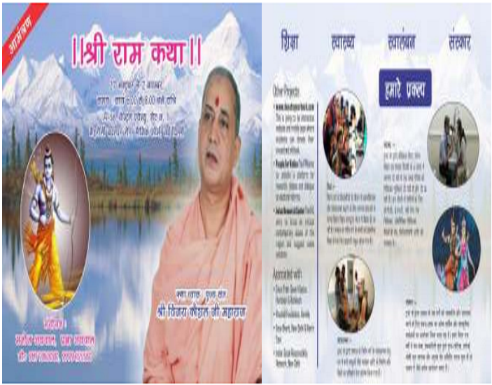 To promote ethics and values, Mr. Agarwal organizes 'Shri Ram Katha' every year since last 5 year by the highly revered Shri Vijay Kaushal ji Maharaj for the cause and benefits of 'Divya Prem Seva Mission' which is having two hospitals, education centers, and hostels for about 250 children of Leprosy Parents in Haridwar and Hrishikesh in Uttarkhand. Mr. Agarwal has also organized 'Durga (With Hema Malini)', 'Kuchh bhi ho sakta hai (with Anupam Kher)', 'Chanakya (with Manoj Joshi)' for the same cause.